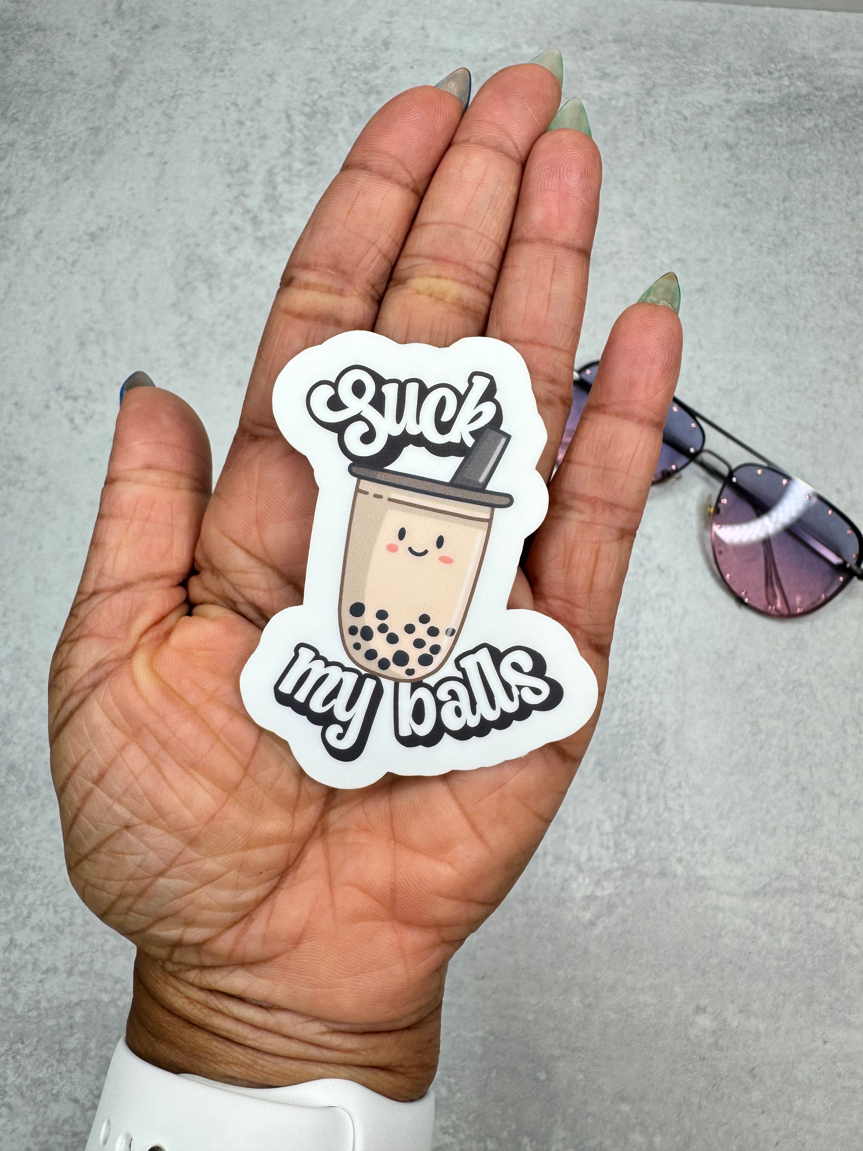 This cheeky sticker is perfect for boba lovers with a bold sense of humor. Featuring a cute and playful design, it’s made from high-quality, durable vinyl with a matte finish. Whether you're decorating your water bottle, laptop, phone case, or car window, this fun sticker adds some personality wherever it goes.